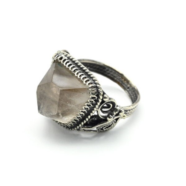 Кольцо с раухтопазом ромб гранённый и стразы..