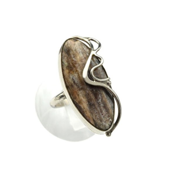 Кольцо с лунным камнем (имитация) "Круг" 23мм., (иск.)