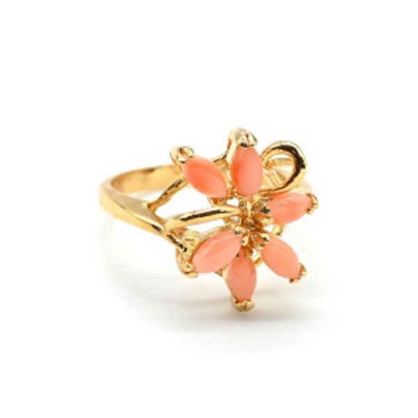 ko27-00202, ko27, ko27-, 27-, 27-00202, кольцо_женское_"шесть_трубочек"_с_кораллом, коралл, кольцо_коралл