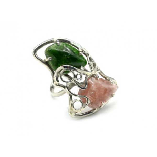 • Кольцо с турмалином и хромдиопсидом 25*38мм