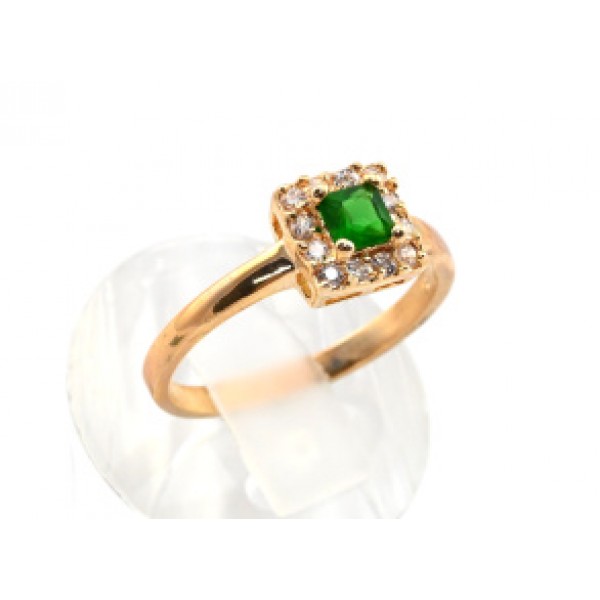 Кольцо с позолотой "Карат" циркон зелёный, (иск.)