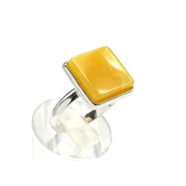 Кольцо с янтарём в посеребрении квадрат 17мм цвет медово-молочный (иск.)