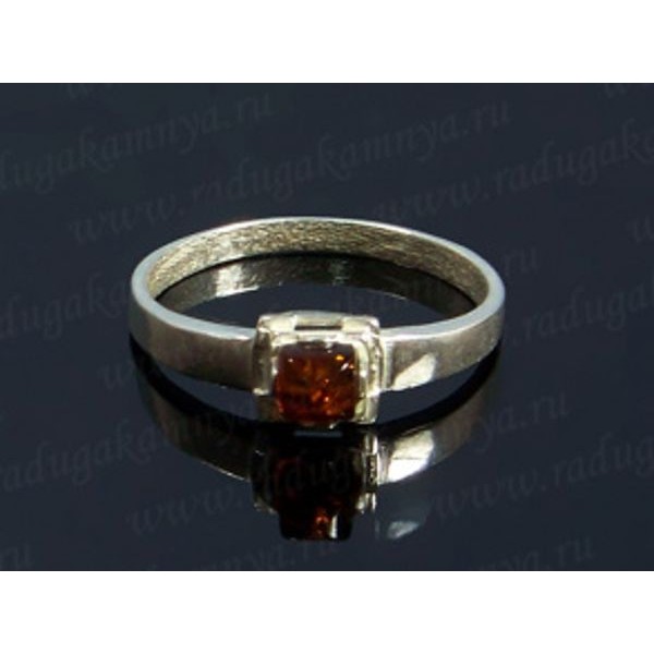 Кольцо с янтарём в посеребрении квадратик 4мм коньячный (иск.)