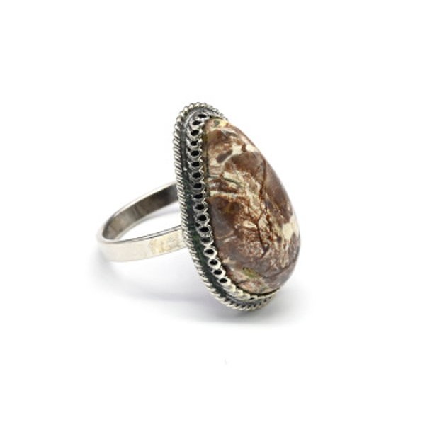 Кольцо яшма уральская "Капля" 15*25мм.