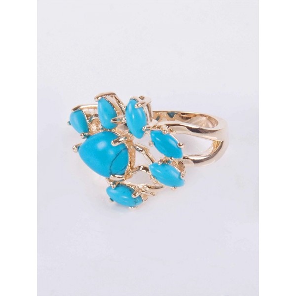 C830 Кольцо позолоченное с бирюзой (имитация) "гре..