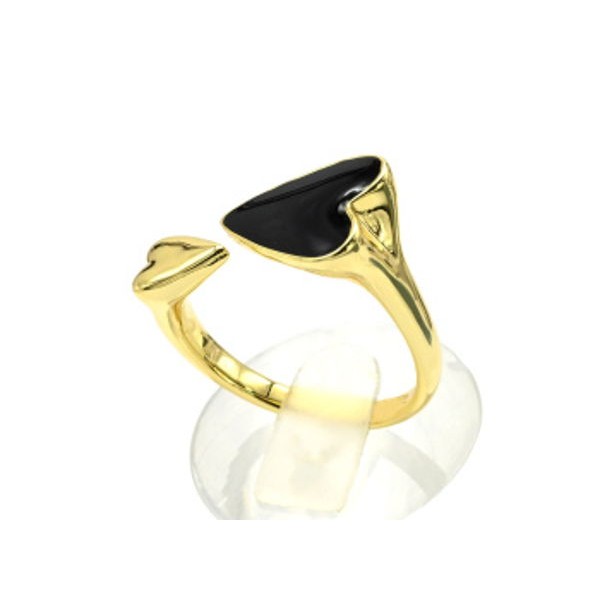 Кольцо Клевер с эмалью черной, золотистое (иск.)..