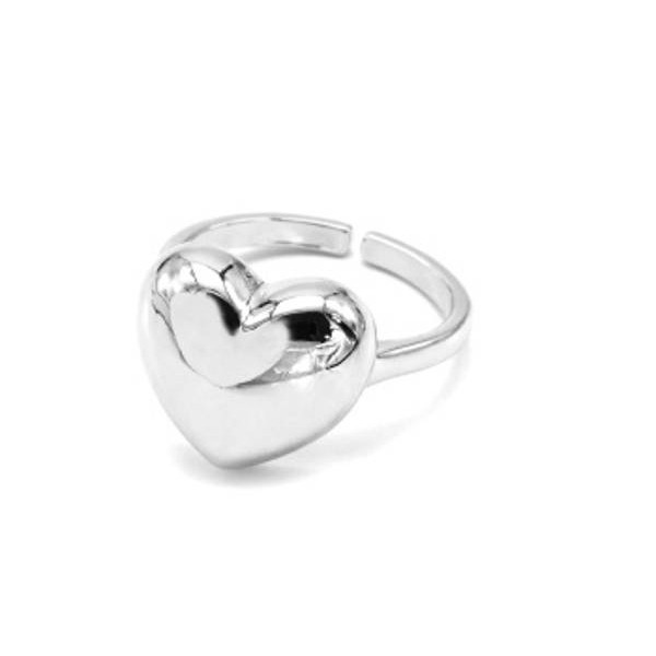Кольцо Сердечко 15*14мм, серебристое (иск.)