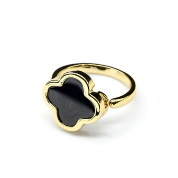 Кольцо с черной керамикой клевер 15*15мм, золотистое (иск.)
