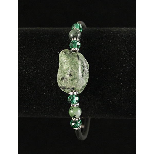 Браслет цоизит нат., галтовка и шарик, +хрусталь, на струнке
