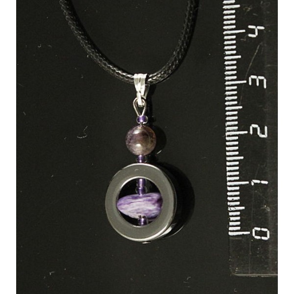 Кулон чароит (галтовка), аметист (шарик 6мм), гематит (круг)