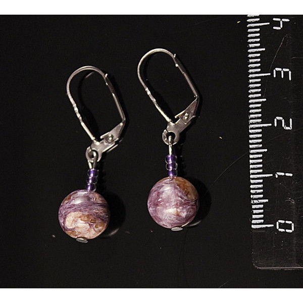 Серьги с чароитом "балерина", круг 12мм, швензы посеребрение