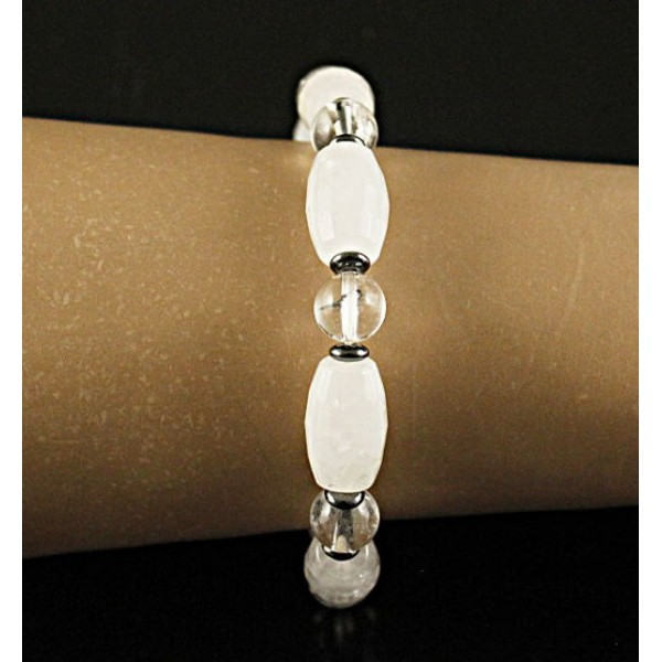 Браслет горный хрусталь (бочонок и шарик), гематит (рондель)