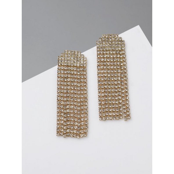 Серьги висячие со стразами "Водопад" квадрат, цвет..