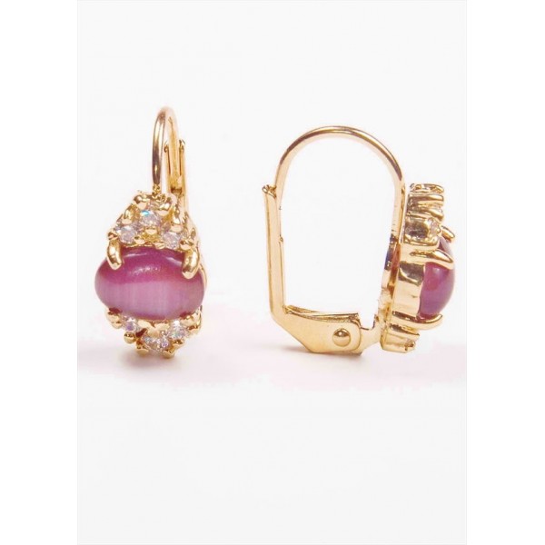 Серьги с фиолетовым кошачьим глазом (синт.) "1 камень 6 цирконов"
