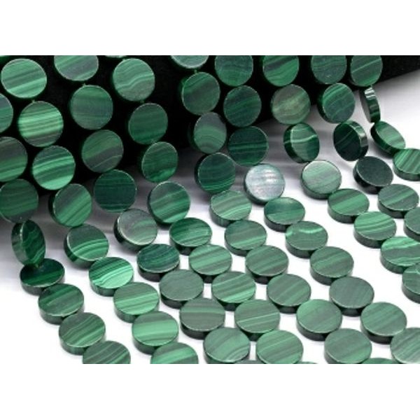 Бусины из малахита круг 10*10*5мм, 39см, 39 бусин..