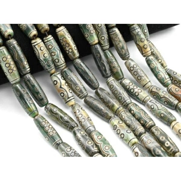 Бусины Дзи "Девять глаз" из агата бочонок 10*30мм, цвет зеленый, 1 бусина