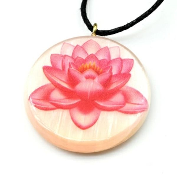 Кулон из селенита "Лотос" круг 34мм, на шнурке