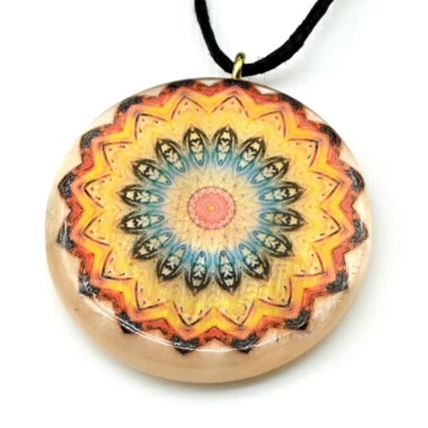 • Кулон Мандала №5 из селенита круг 33мм на шнурке
