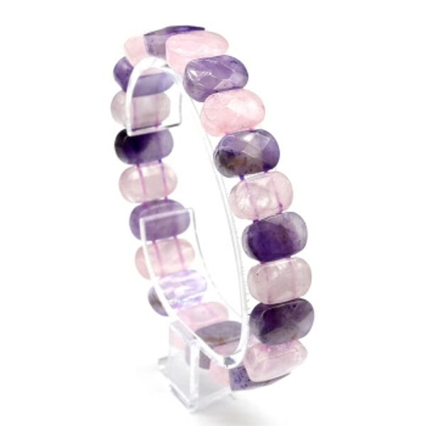 • Браслет граненый 14*7мм из розового кварца и аметиста