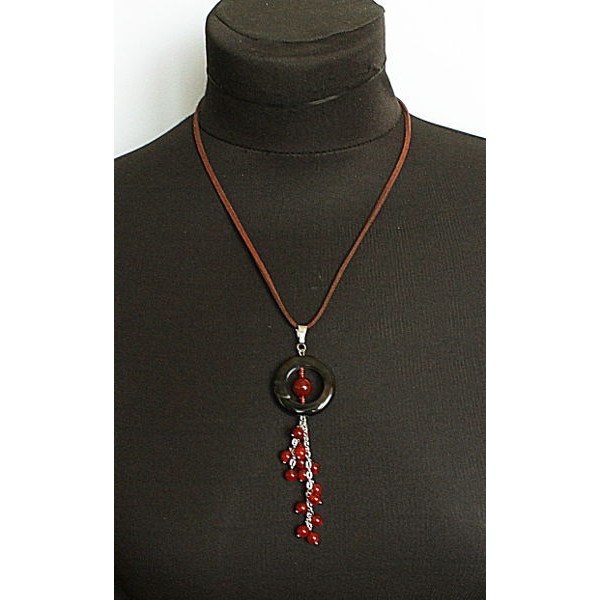 Кулон из сердолика, шарик 10см, шарик 6см и агата черного, круг полый бусина