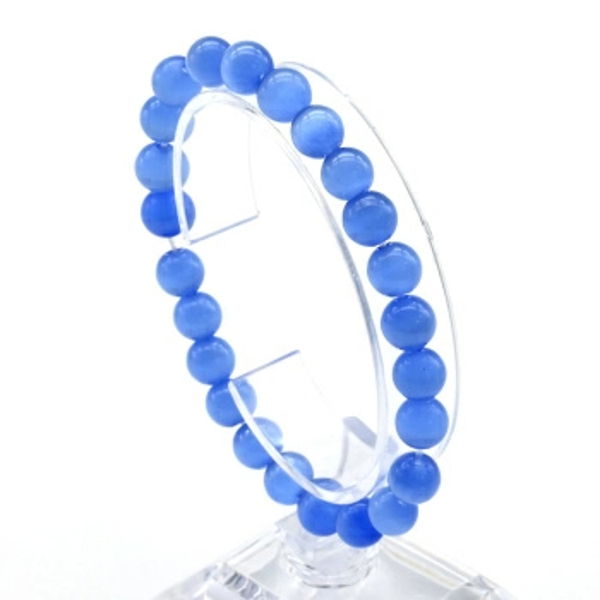 Браслет из кошачьего глаза (синт.) шарик 8мм цвет васильковый, 15см (иск.)