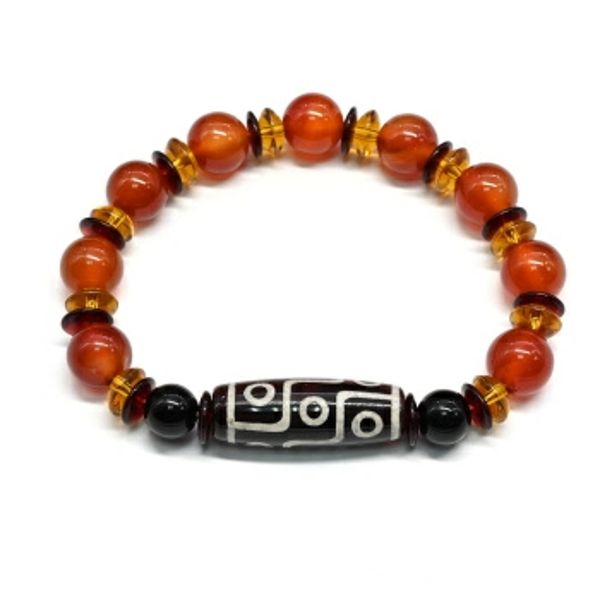 Браслет с бусиной дзи "Пять глаз с молнией" бочонок 14*30мм с сардониксом шарик 12мм