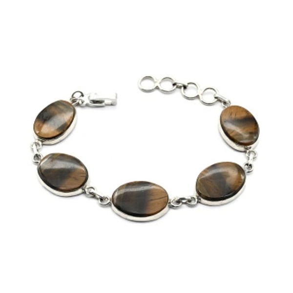 Браслет тигровый глаз в посеребрении овал 15*11мм,..