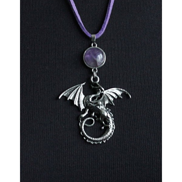 Кулон из аметиста "дракон", круг 12мм