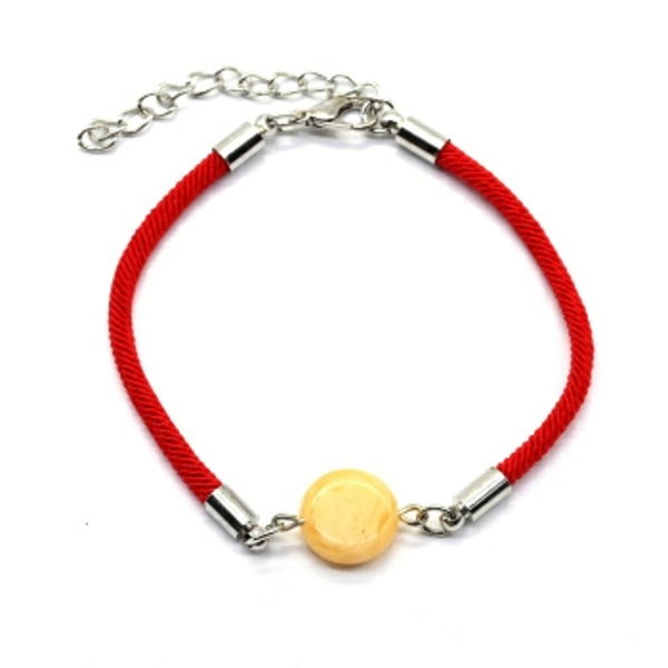 Красная нить на запястье со вставкой из янтаря круг 12мм цвет молочный, серебристый, 18см (иск.)