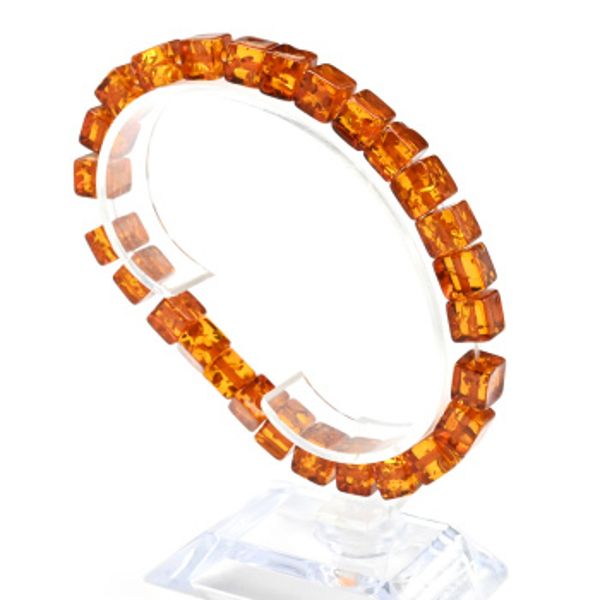Браслет из янтаря кубик 7мм цвет коньячный, 18см (иск.)