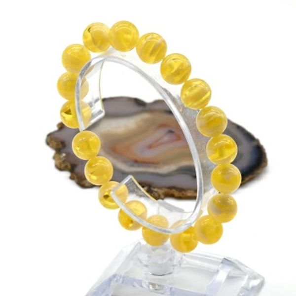 Браслет с шариками из янтаря 10мм цвет лимонно-молочный, 16см (иск.)