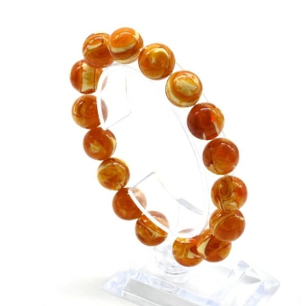 Браслет с шариками из янтаря 12мм цвет карамельный, 16см (иск.)
