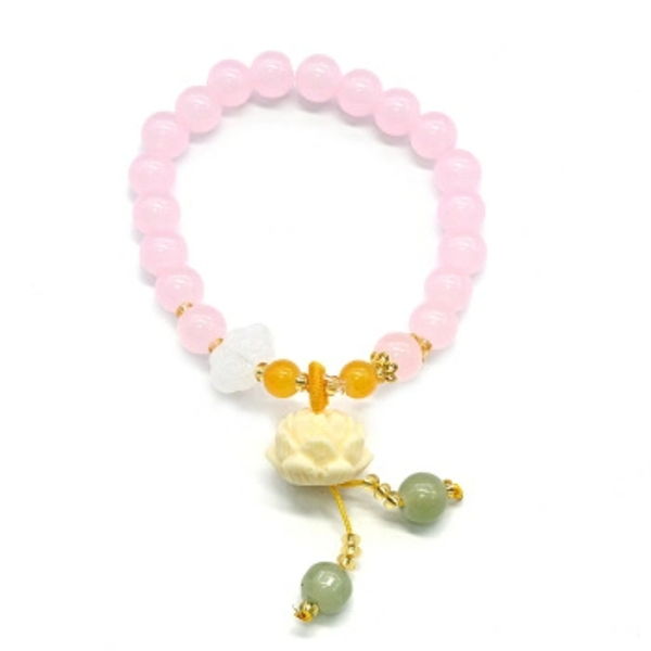 Браслет с подвеской Лотос шарик 8мм цвет розовый, 17см (иск.)