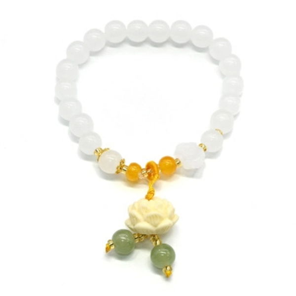 Браслет с подвеской Лотос шарик 8мм цвет белый, 17см (иск.)