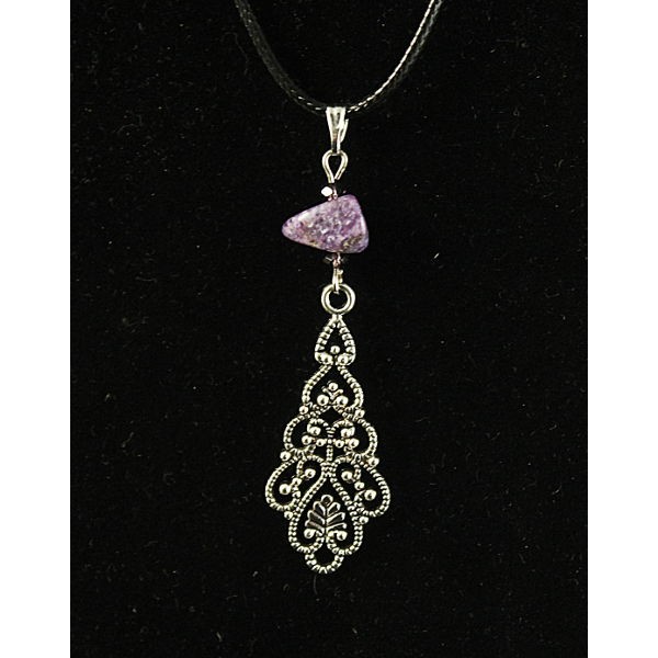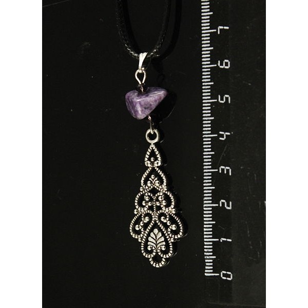 Кулон чароит (галтовка), коннектор "сказочный лист"