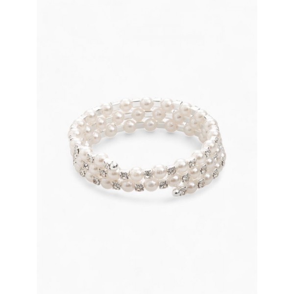 Браслет с жемчугом «Пружинка» стразинки, шар № 6, белый, цвет серебристый, L=6 см