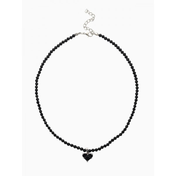 Колье-чокер из бисера «Хрусталь», сердце, чёрный, цвет серебристый, 37 см + 5 см доп, цепочка