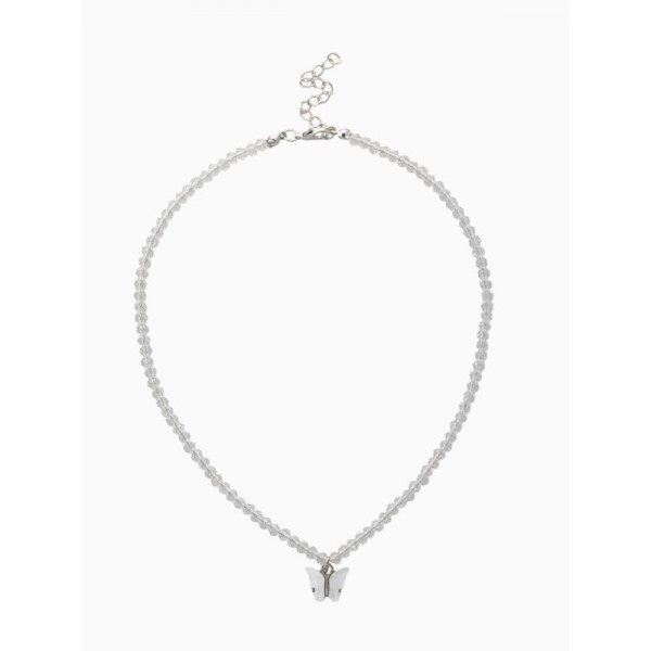 Колье-чокер «Бабочка» хрусталь, белый, цвет серебристый, 36 см + 5 см доп, цепочка