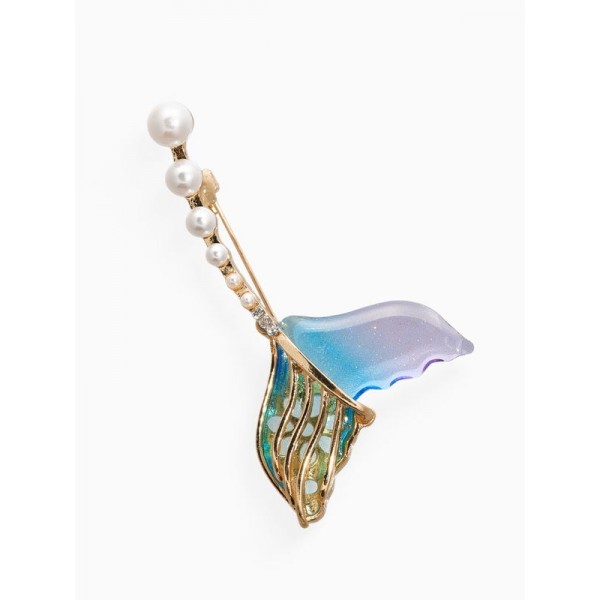 Брошь «Хвост Русалки» с жемчугом, цветная, цвет золотистый