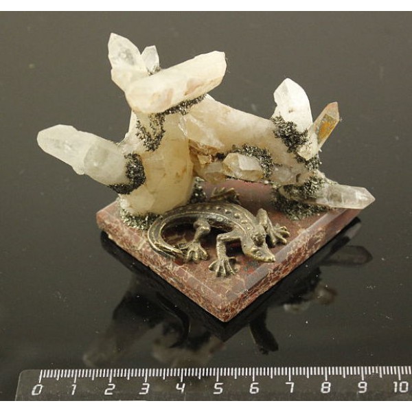 Сувенир 9х8х6см из кристаллов горного хрусталя на яшме уральской, с ящерицей