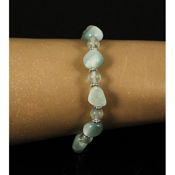 Браслет ангелит (овалы) и флюорит зеленый (шарик 6мм) на резинке