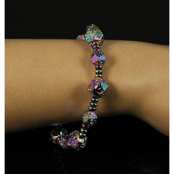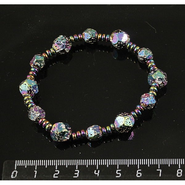 Браслет гематит (рондели) и лава (шарик 10мм огранка), цвет радужный (тонир.) на резинке