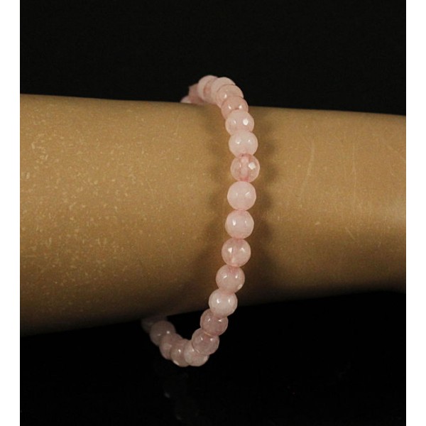 Браслет кварц розовый, шарик 6мм огранка на резинке