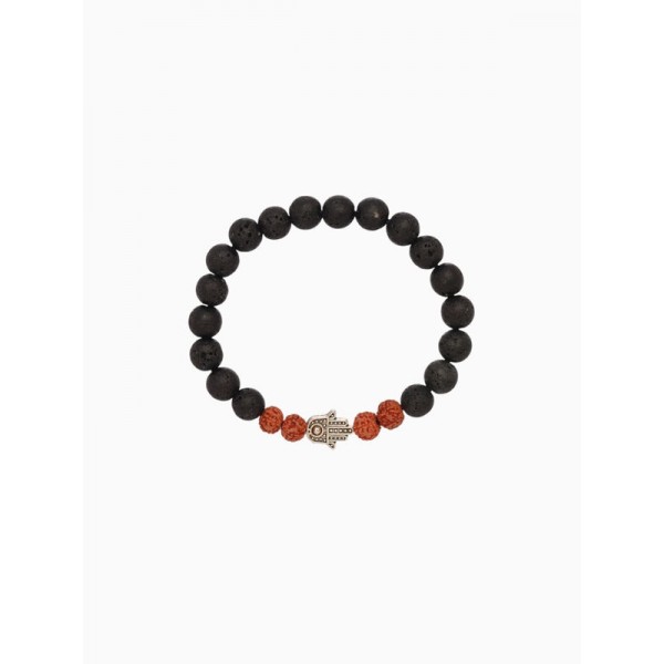 Браслет «Хамса», лава, рудракша, длина 18 см, чёрный, коричневый