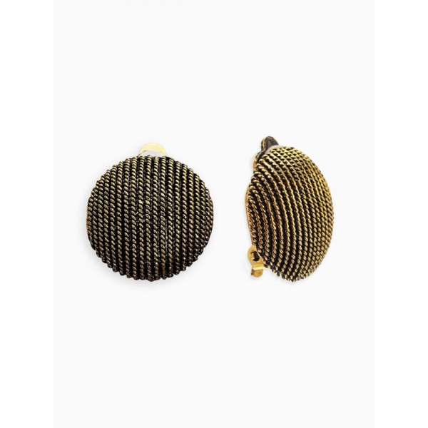 Клипсы "Винтаж" круг рубчик, цвет чернёное золото