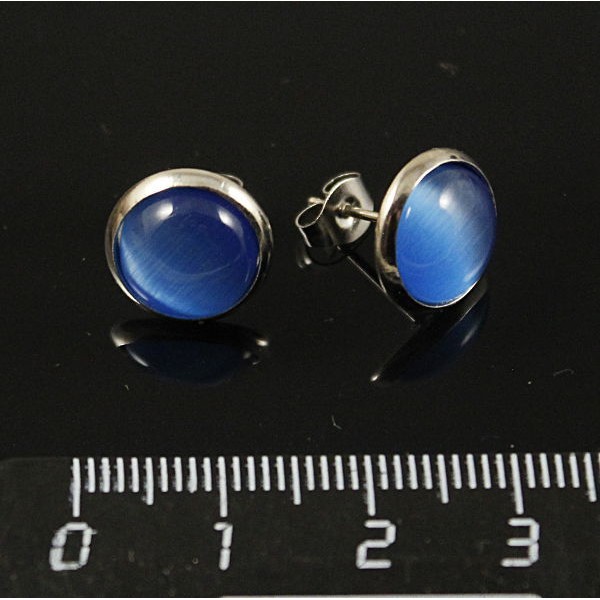 Серьги-пусеты кошачий глаз синт. синий, круг 10мм..
