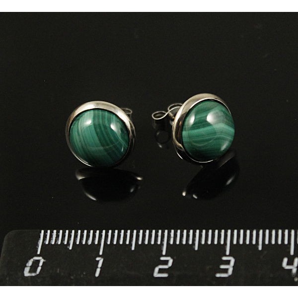 Пусеты малахит, круг 10мм