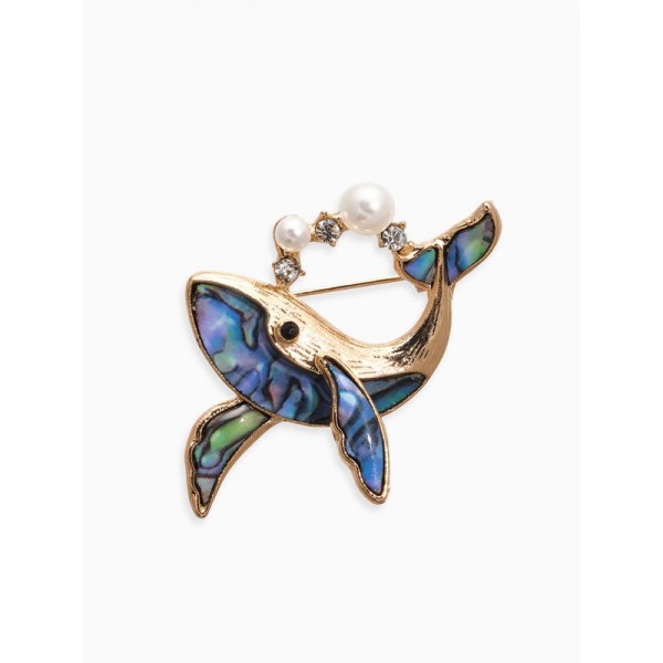 Брошь «Кит гелиотис», зелёная, цвет золотистый