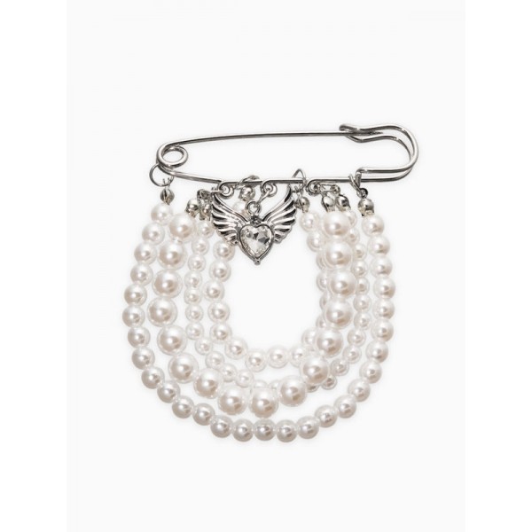 Булавка «Жемчужная россыпь», 6.5 см, d подвесок=5+6+8 см, белая, цвет серебристый