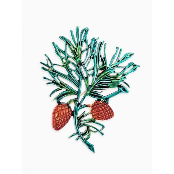 Брошь «Кедровая веточка», коричнево-зелёная, цвет золотистый
